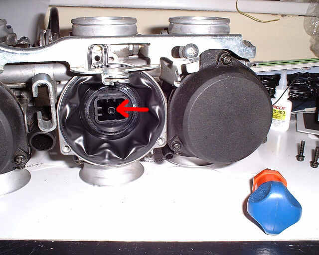 This is with the main jet taken out - you can see the threaded bit it goes into.