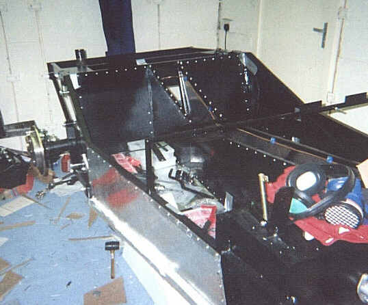 Floor panels on and rear axle in place.